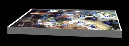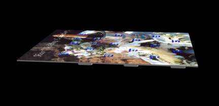 A laminated face printed with photo on front and with answers on back of door areas. It is die cut to allow doors to open.